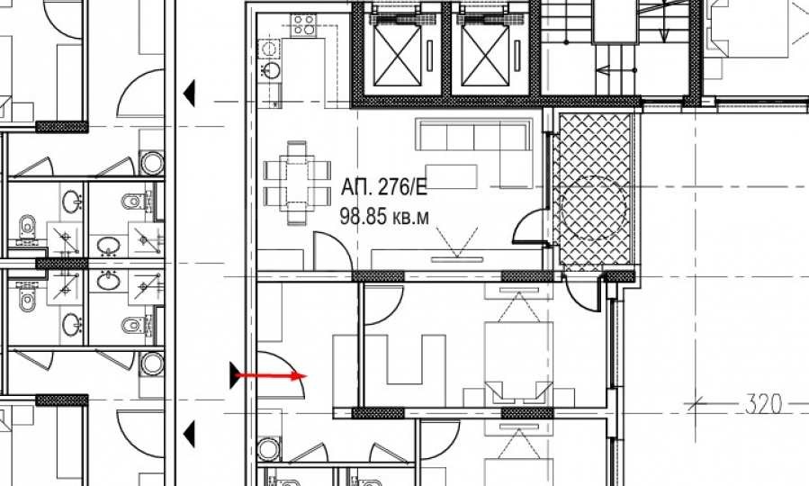 Имотът е разположен на 2-ри етаж и е с обща площ 114.21 кв.м, чиста площ - 98.85 кв.м, върху които са разпределени: антре, две бани с тоалетни, дневна с кухня, тераса с излаз от две от стаите, две спални. Жилището се издава в степен на завършеност по БДС, с петкамерна PVC дограма Rehau, с троен стъклопакет и блиндирана входна врата.