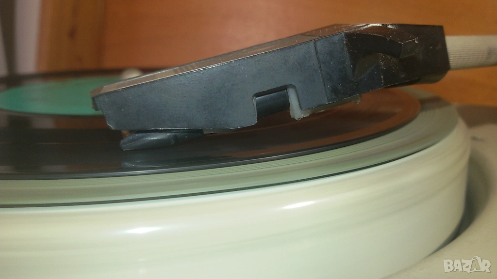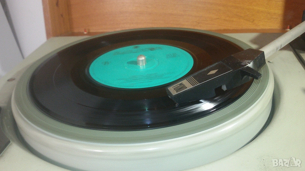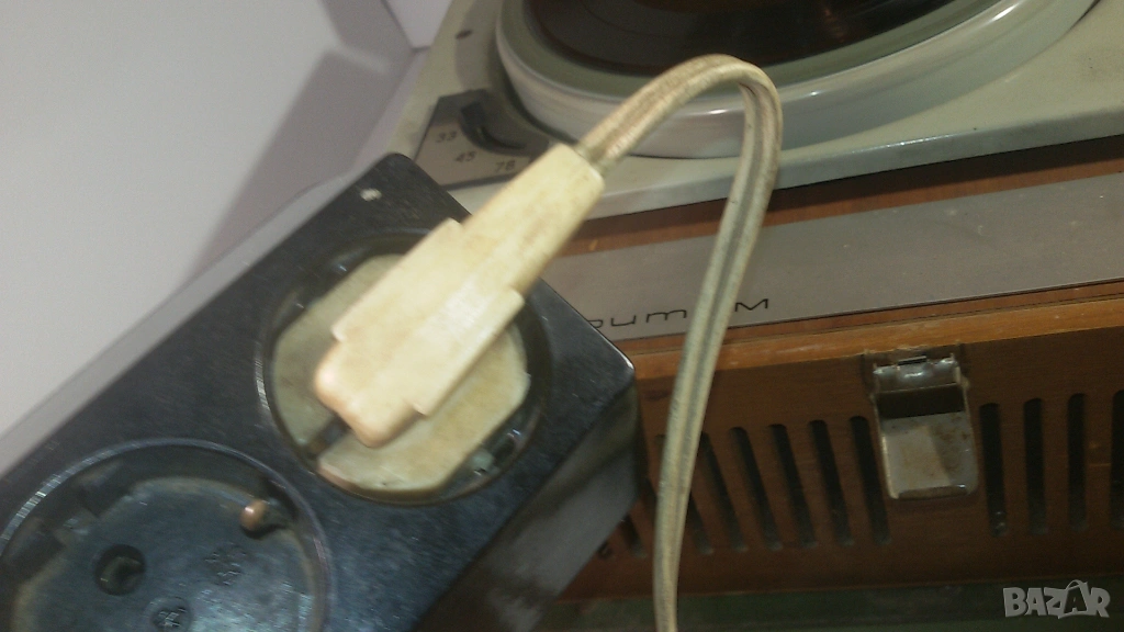 Тествах го с няколко 33 RPM плочи и работеше, но не вадеше добър звук. Чуваше се и звук като от електрическата мрежа (50 Hz). Може някой кондензатор да е за смяна, да трябва да се смени иглата или нещо такова. Не разбирам от грамофони и няма да се занимавам да го оправям.