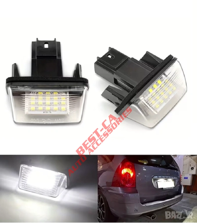 2 броя по 18 високоефективни SMD светодиодни лампи за регистрационни табели.