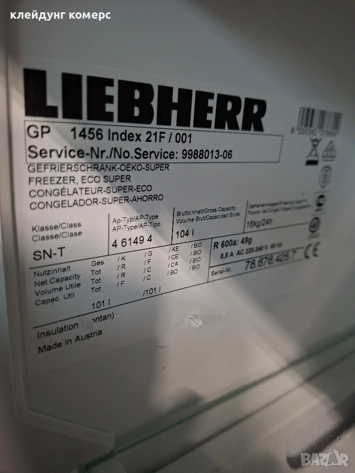 Фризер LIEBHERR вис.85см. 104л. А+++ → Обява 53366711
