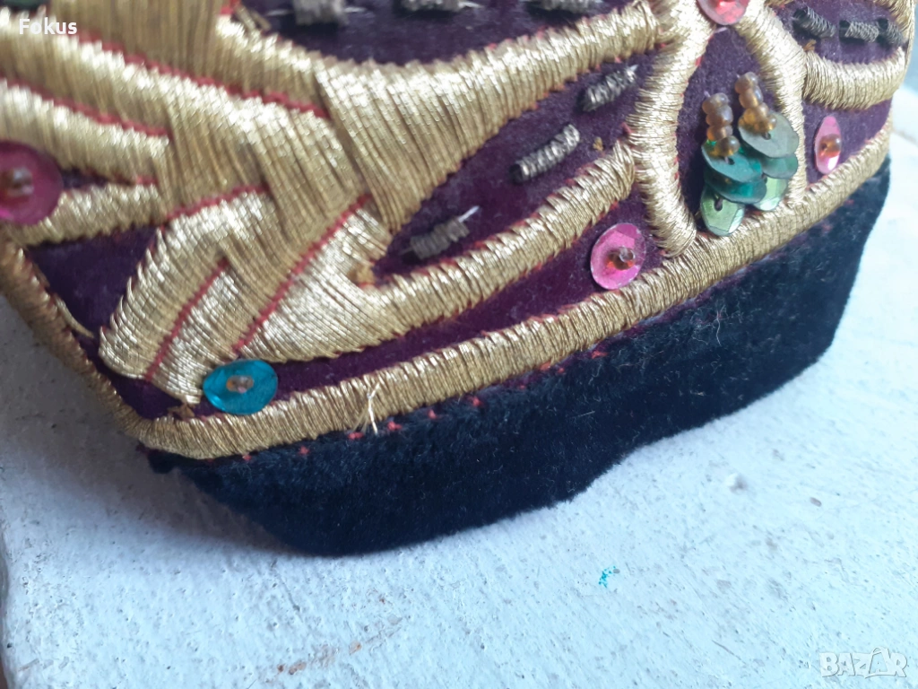 Стара шапка тюбетейка 19 век кадифе сърма пайети → Обява 53366723