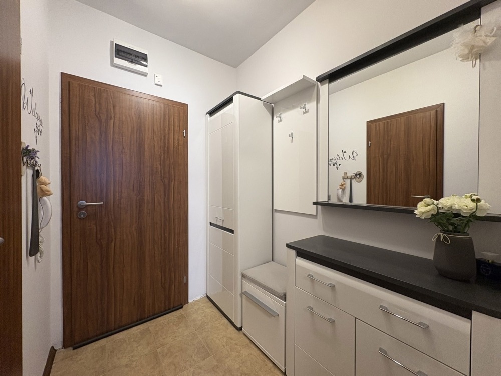 Кухненския кът е оборудван с горни, долни шкафове, фурна и хладилник.