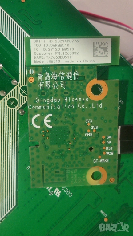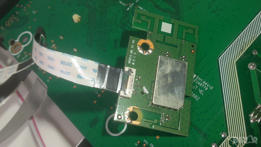 Платка от smart TV HiSense 50A6BG с колонки, Wi-Fi/BT модул и други кабелчета.