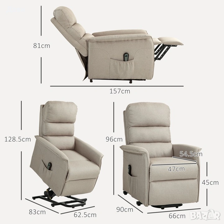 Електрическо релакс кресло HOMCOM, повдигащо се, дистанционно управление