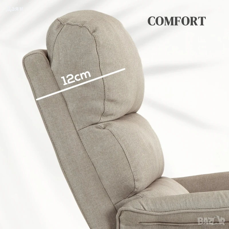 - Материали: Плат с вид на лен (100% полиестер), стоманена рамка, подплата от пяна