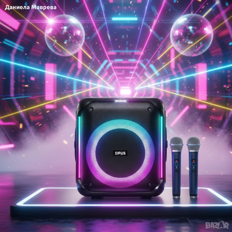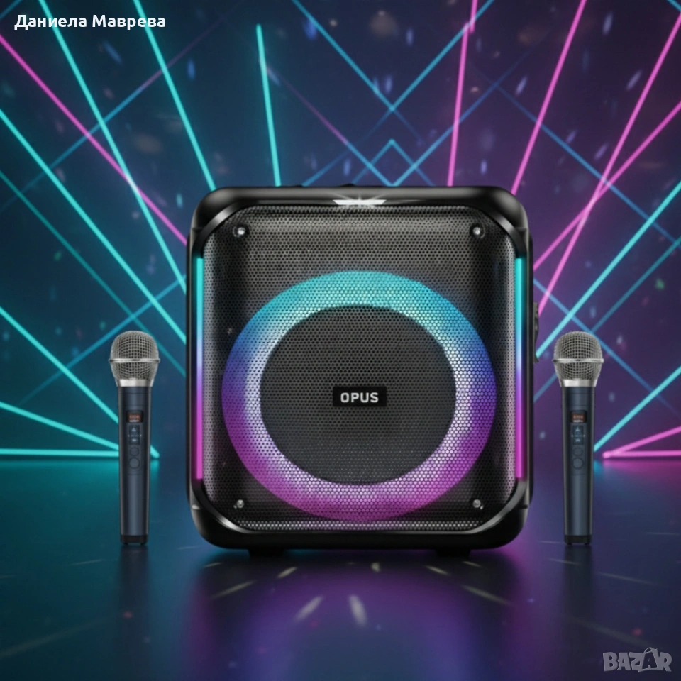 Допълнителни функции: караоке режим, 2 включени микрофона, LED светлинни ефекти, включен USB кабел за зареждане.
