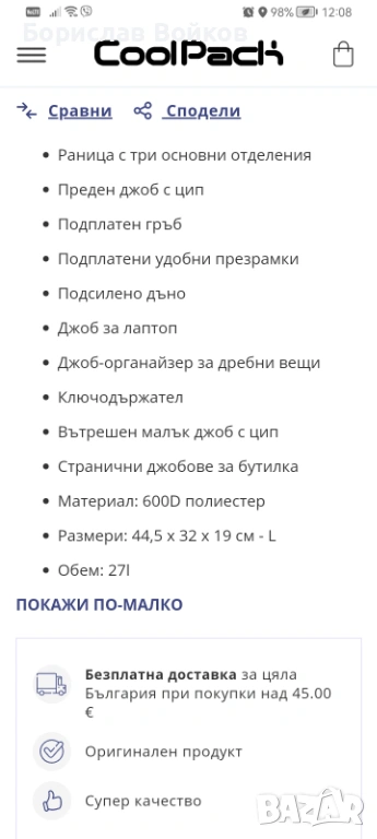 Ученическа раница за момиче Coolpack → Обява 53366870