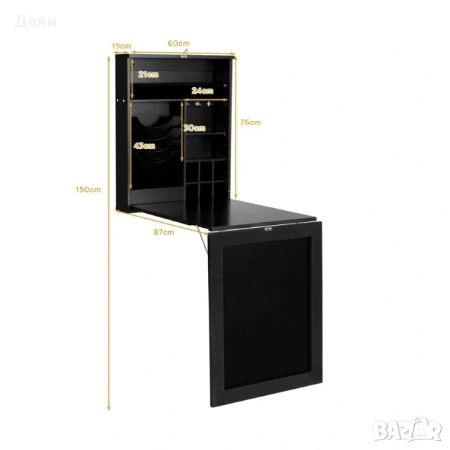 Сгъваемо бюро за стена с дъска COSTWAY