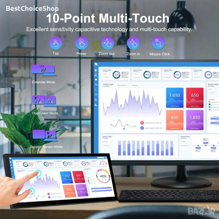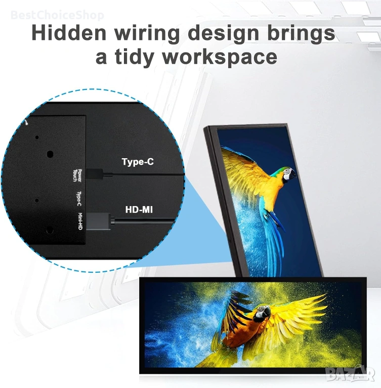 12.3-инчов тъч монитор с HDMI за лаптоп, вторичен дисплей – Портативен LCD