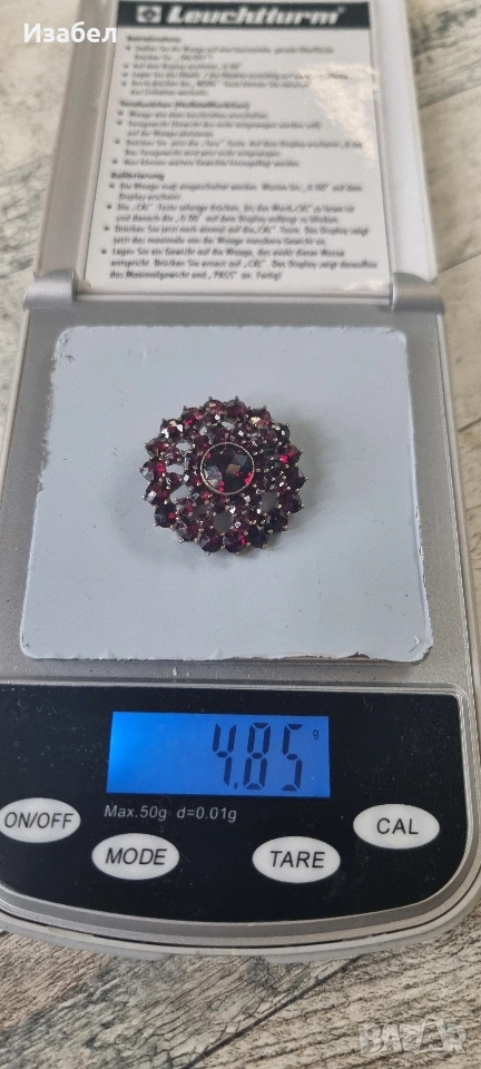 Сребърна позлатена брошка с гранати. Изпращам с преглед и тест. Разгледайте и другите ми обяви. :)