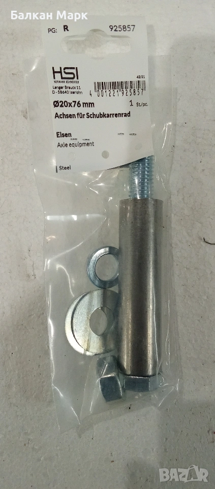 Ос за колело на ръчна количка – Ø20 x 76 мм → Обява 53367147