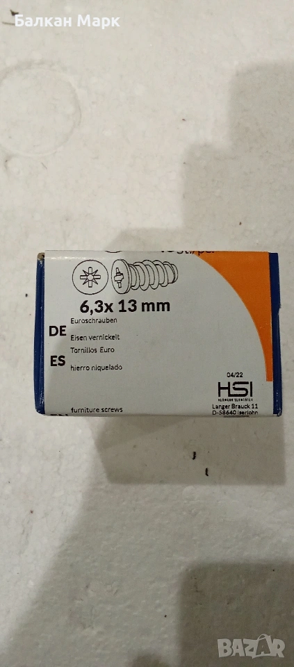 Продавам евровинт 6.3×13 мм, опаковка от 40 броя.