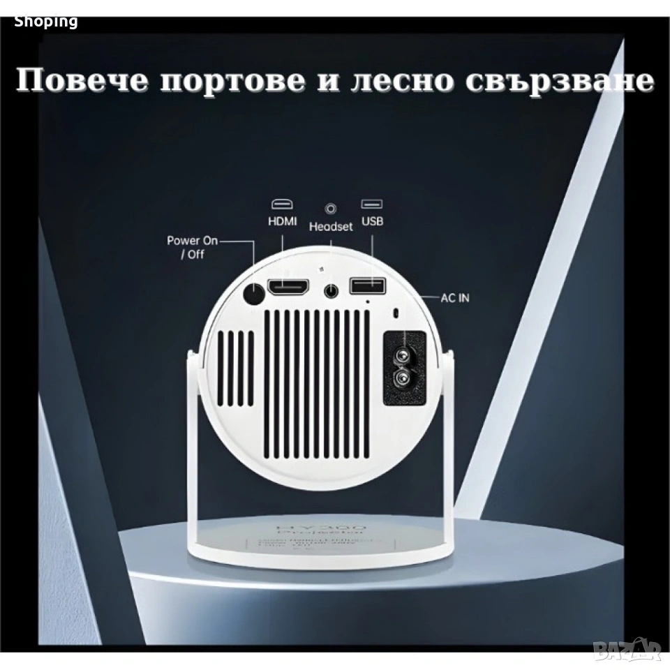 Резолюция: Поддържа 4K декодиране и Ultra HD съдържание Яркост: Около 280 ANSI лумена Операционна система: Android TV 11.0 с предварително инсталирани приложения Свързаност: WiFi 6 (2.4/5 GHz), Bluetooth 5.0, HDMI, USB, 3.5 мм аудио Корекция на изображение: AutoKeystone 4D + ръчен фокус и ZOOM Гейминг: Включени 2 безжични контролера Аудио: Вграден високоговорител + аудио жак за външни колони Физически: Алуминиева стойка 270°; размери прибл. 17 x 13 см Гаранция: 12 месеца