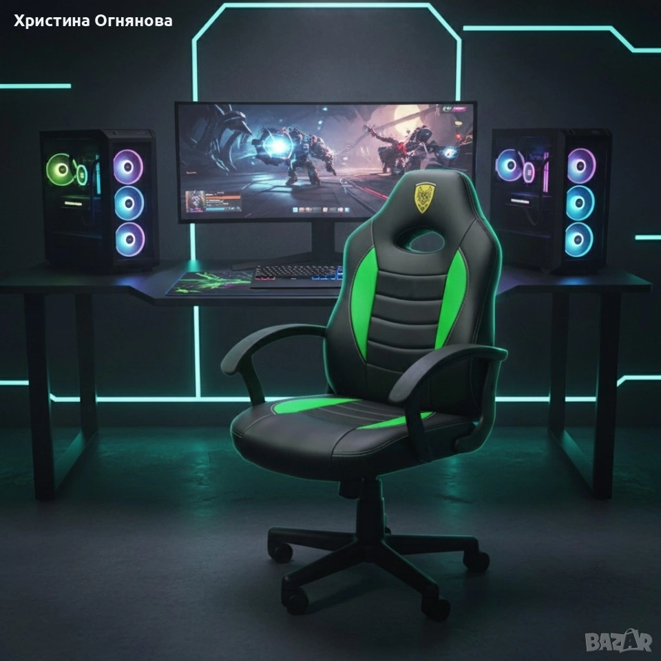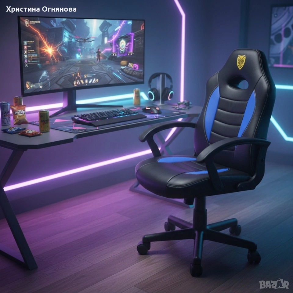 Детски геймърски офис стол – Спортен дизайн, ергономичен и регулируем → Обява 53367470