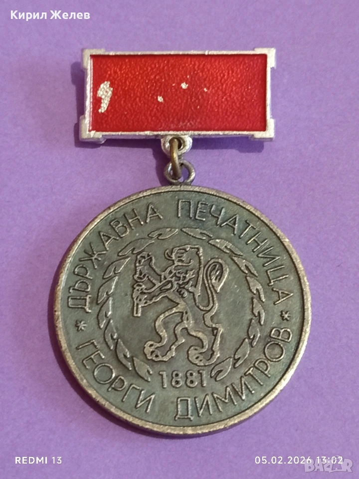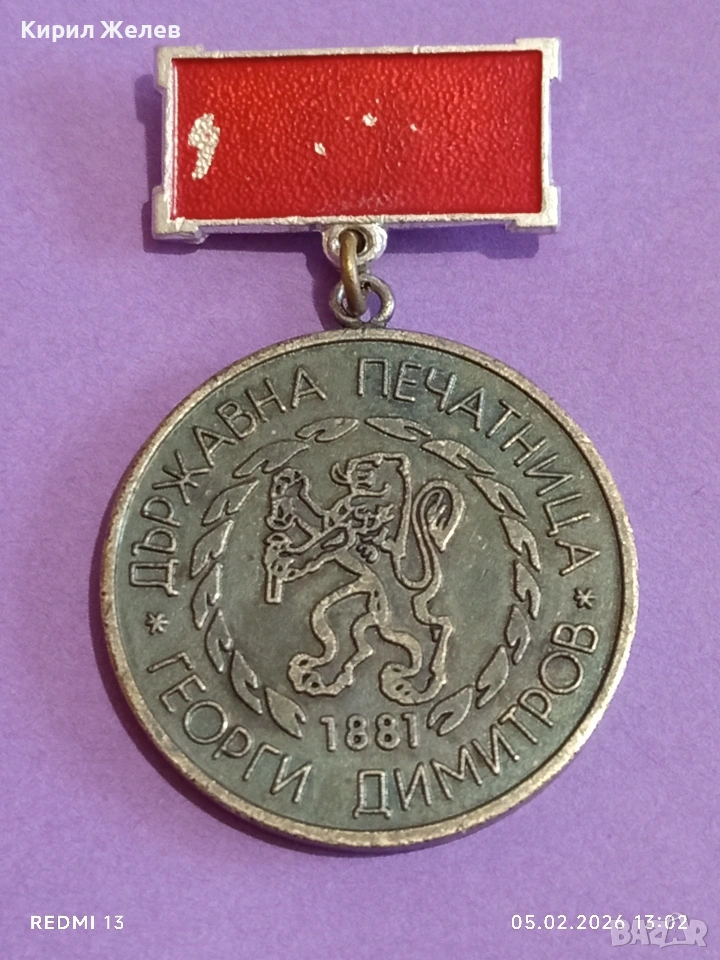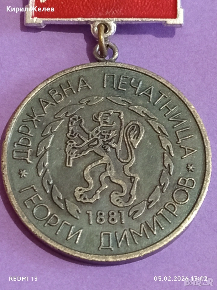 Соц медал Държавна печатница Г. Димитров за КОЛЕКЦИЯ 53456