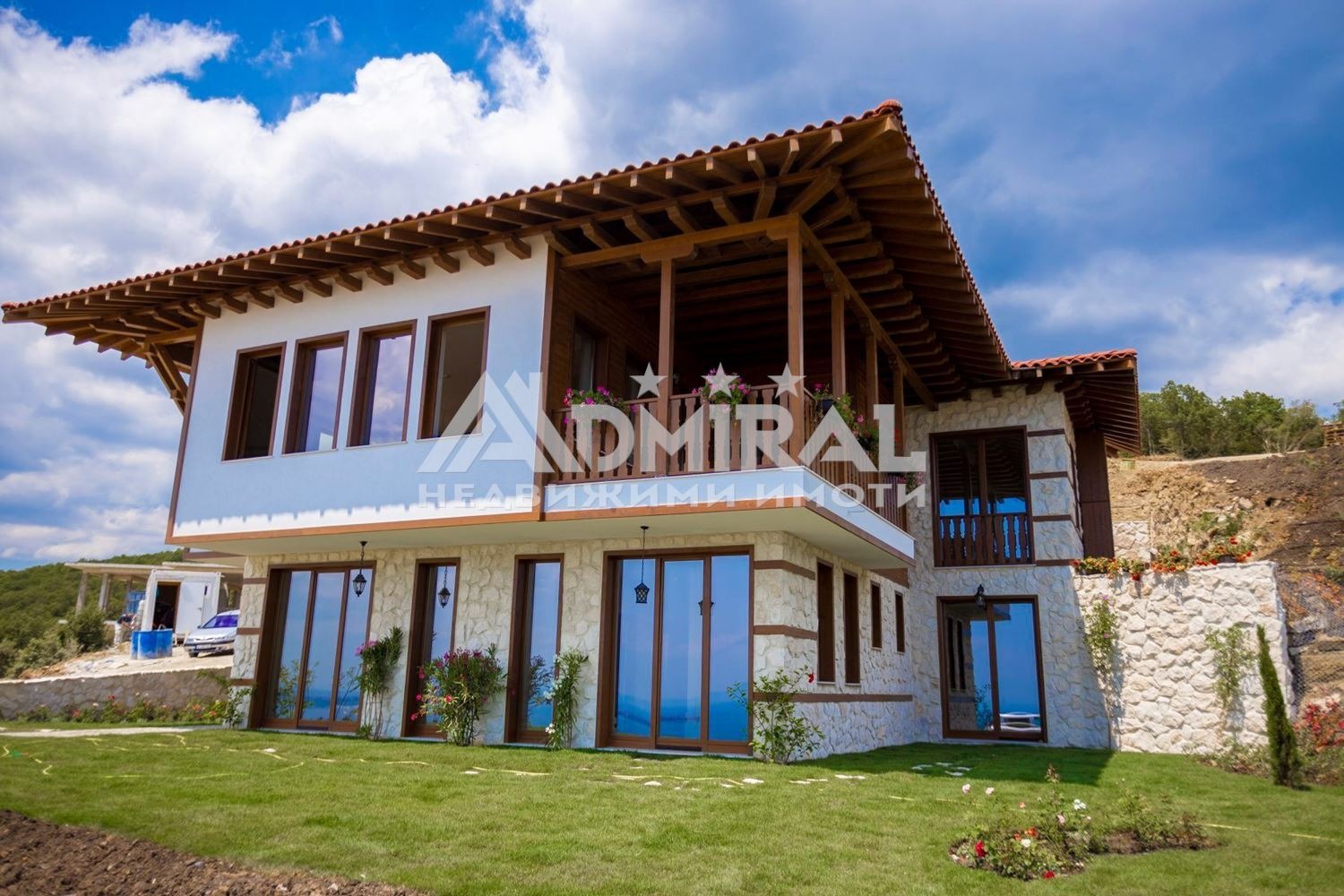 ADMIRAL недвижими имоти продава самостоятелна къща с РЗП от 300 кв.м изградена в сърцето на екологичен комплекс от затворен тип с неповторима панорамна гледка към морето и гората. Имотът е въведен в експлоатация с Акт 16 и се предлага завършен до 'тапа'. Цена по договаряне за индивидуални изисквания за материали и допълнителни работи.