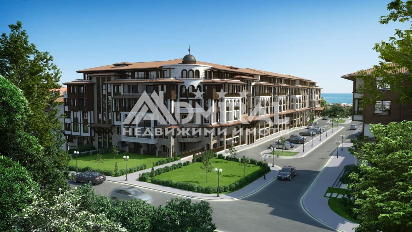 ADMIRAL НЕДВИЖИМИ ИМОТИ предлага за продажба четиристаен апартамент с функционално разпределение и изложение ИЗТОК - ЗАПАД с гледка море във ваканционен комплекс с възрожденски архитектурен стил на втора линия море