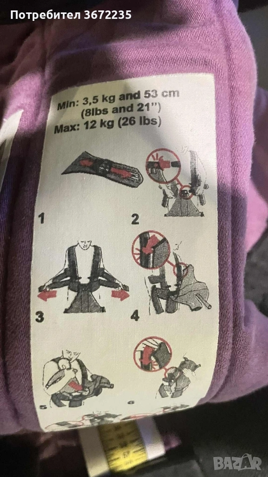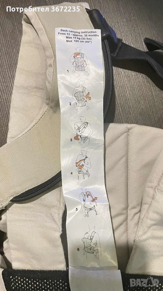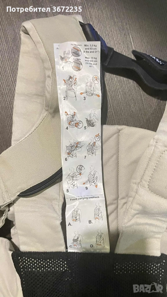 Ергономична раница и кенгуру - BabyBjorn Ергономична раница - 0-36 месеца, мин. 3.5 кг (53 см), макс 15 кг (100 см) - като чисто нова, без протрито или скъсано - 35€ Кенгуру - 0-12 месеца, мин. 3.5 кг (53 см) - макс 12 кг (85 см) - без протрито или скъсано, просто платът е леко изсветлял от пране. - 25€ Ако се закупят и двете - 50€