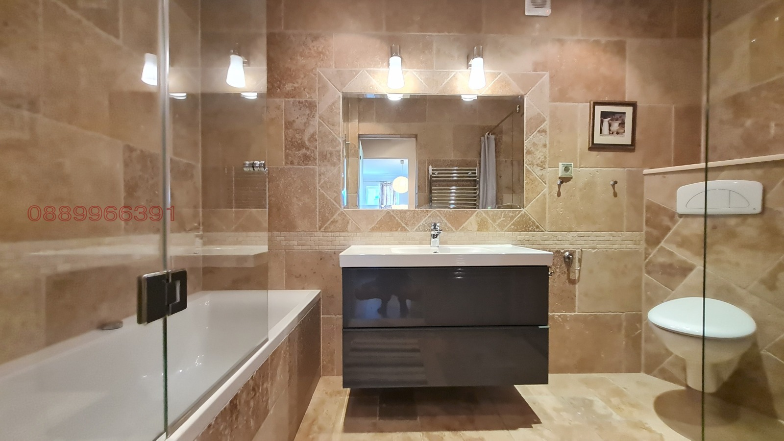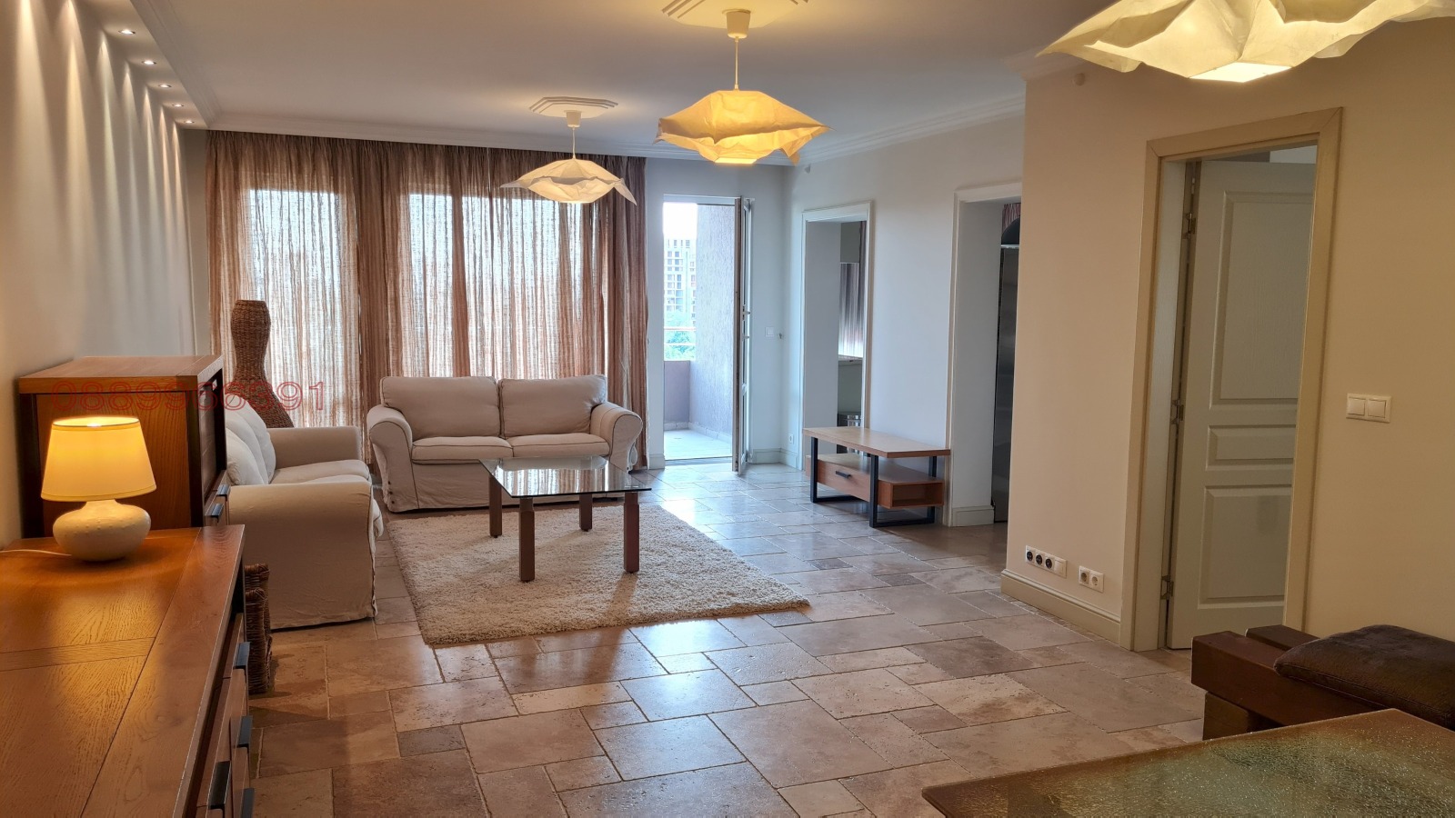 Просторен, слънчев и луксозен апартамент, елегнтно обзаведен и с всички необходими удобства. Три спални и 2 бани + 1 тоалетна за гости, елегантно антре, просторна кухня с трапезария, Огромен хол с два отделно обособени къта за релакс. 2 тераси с красиви гледки. Отделно мокро помещение с пералня, сушилня и мифки и склад за неща. Интернет, СОТ и други модерни удобства. Нова и луксозна сграда с контрол на достъп и видео наблюдение. Парко място включено в цената.