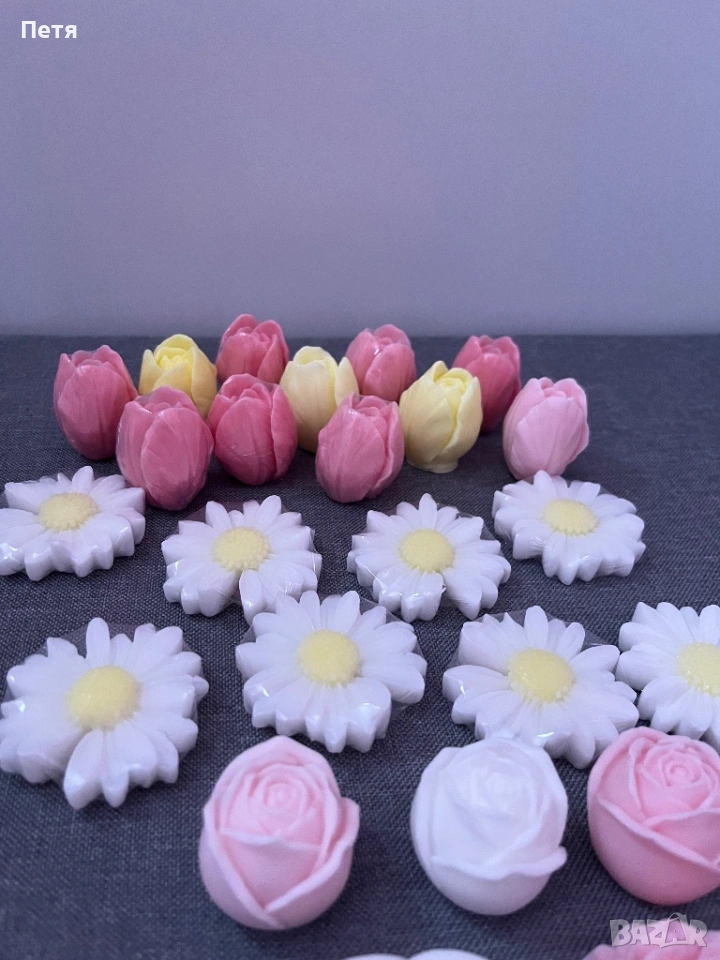 Ароматни глицеринови сапунчета - цветя - лалета, розички, божур. Подходящи за вашите творчески проекти за 8-ми март (осми март).