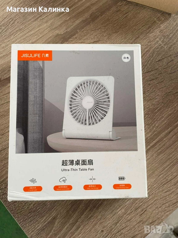 Продавам ултра тънък настолен вентилатор JISULIFE, идеален за бюро, офис или дома.
