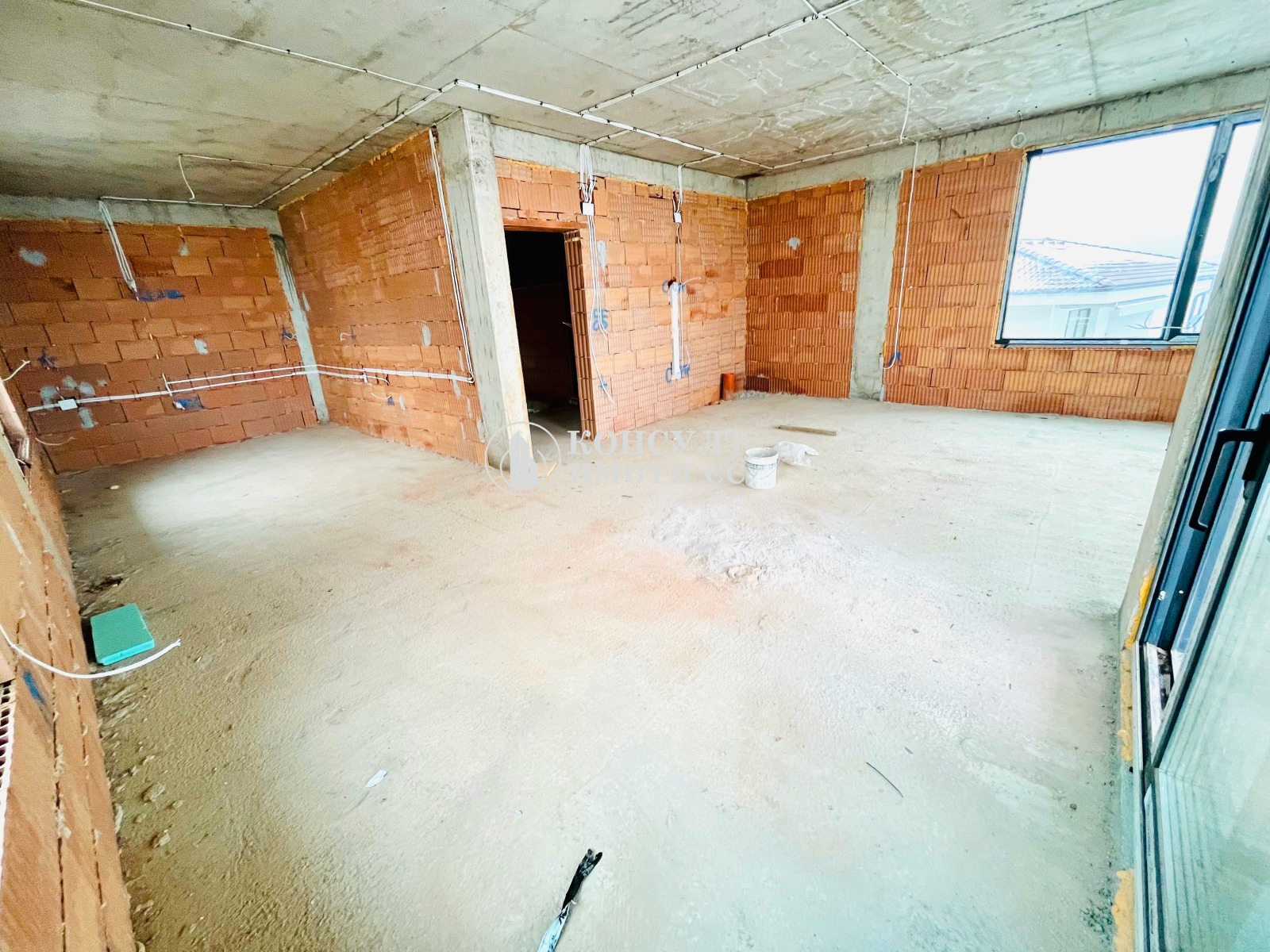 -турбозолна мазилка по стени,гипсокартон по тавани (възможност за скрито осветление по желание на клиента);