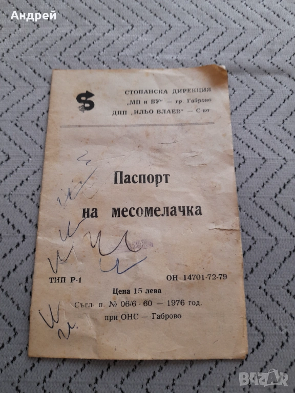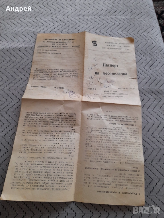 Паспорт Месомелачка, снимка 1 - Антикварни и старинни предмети - 53368069 Паспорт Месомелачка, снимка 2 - Антикварни и старинни предмети - 53368069 Паспорт Месомелачка, снимка 3 - Антикварни и старинни предмети - 53368069 1/3