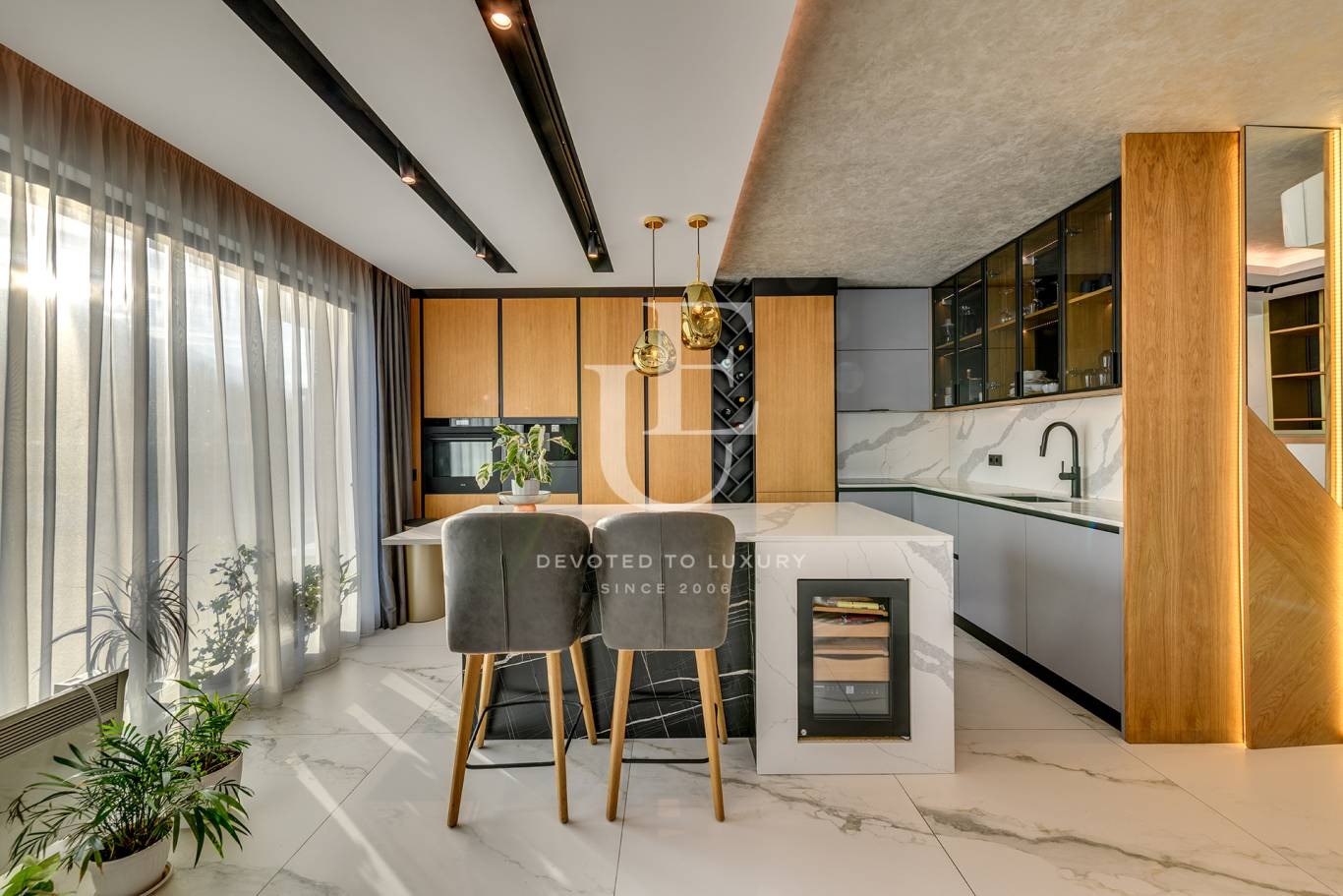 Жилището е изцяло завършено по дизайнерски проект, с внимание към всеки детайл и използване на висок клас материали. Интериорът е обзаведен с елегантни мебели, които съчетават стил и функционалност, създавайки усещане за уют и хармония.