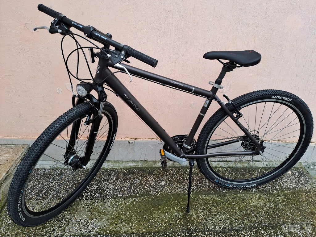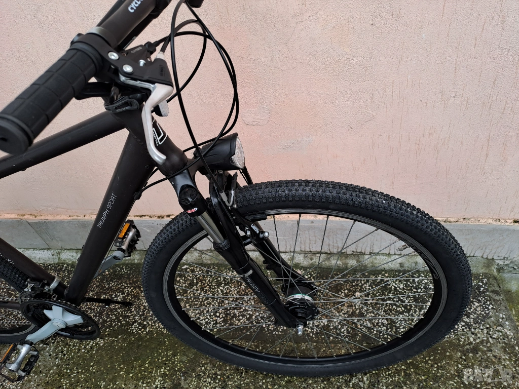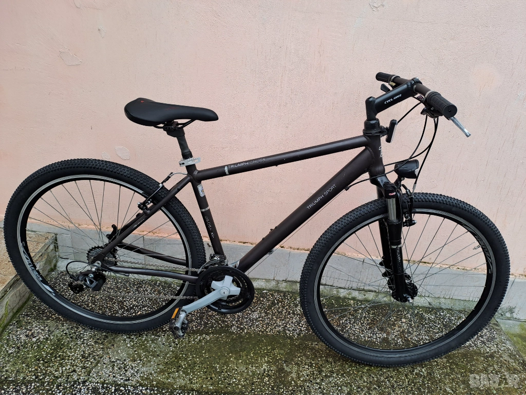 Велосипед Triumph Cross Sport XT с нови седалка и гуми 29 цола. Динамо в предната капла и лед фар. Амортисьор на седалката и вилка със заключване. Скорости 3х7.