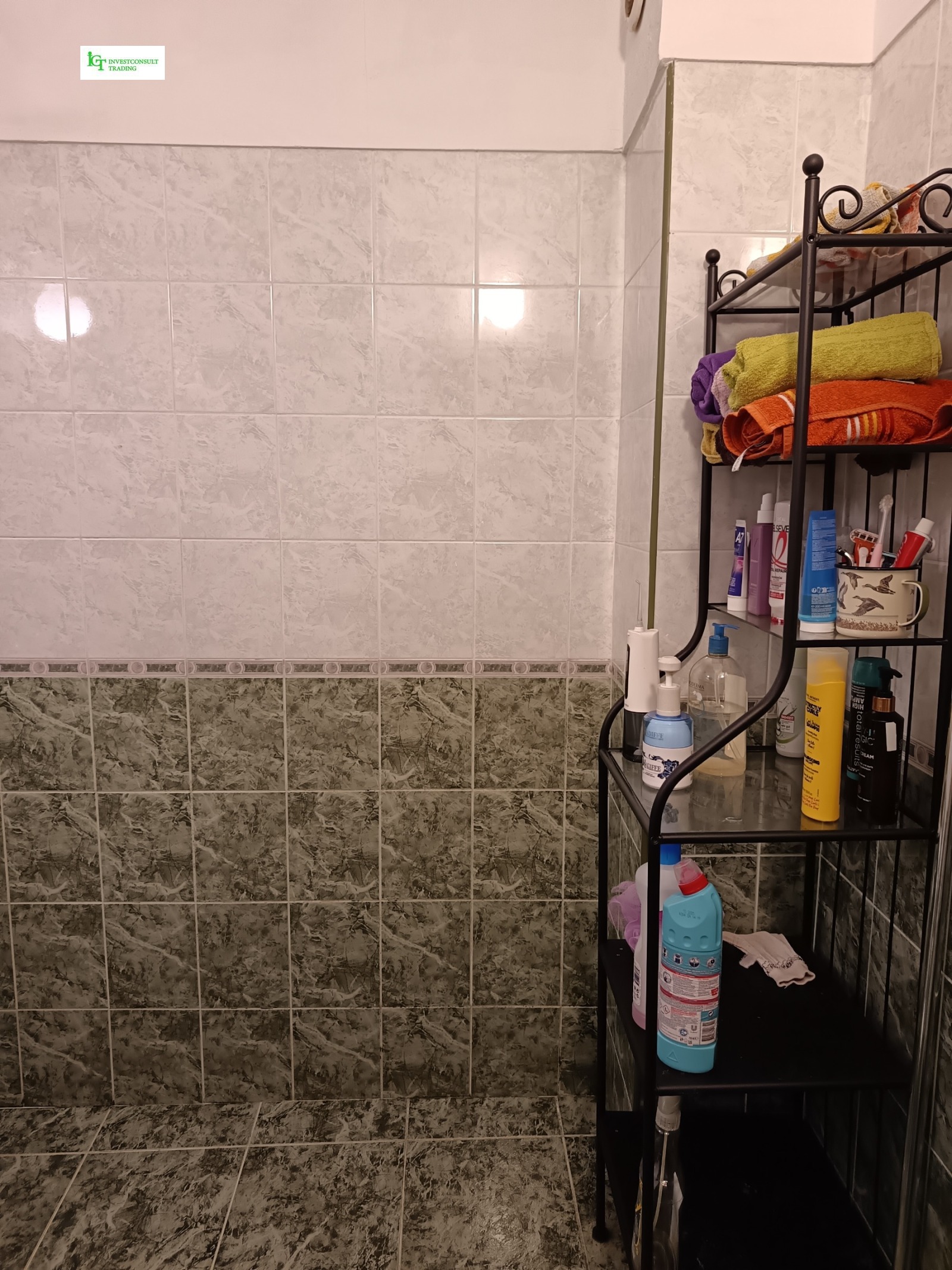 Настилките са теракот и ламиниран паркет, а снетие са на латекс. Мокрите помещения са на фаянс и теракот. Продава се с наличните мебели.