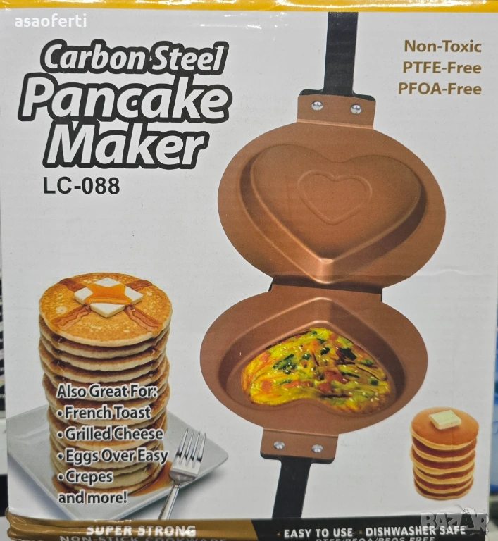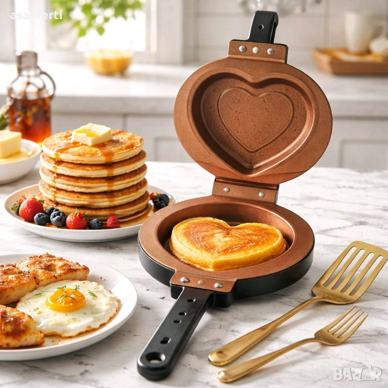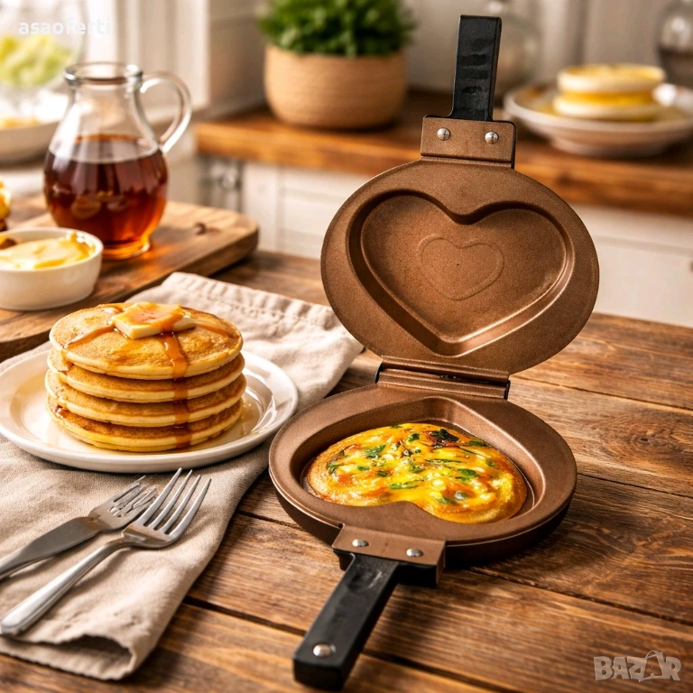 тиган за палачинки! Идеален за приготвяне на пухкави палачинки, омлети или пържени яйца в перфектна форма на сърце. Страхотен подарък за семейството или за любим човек.
