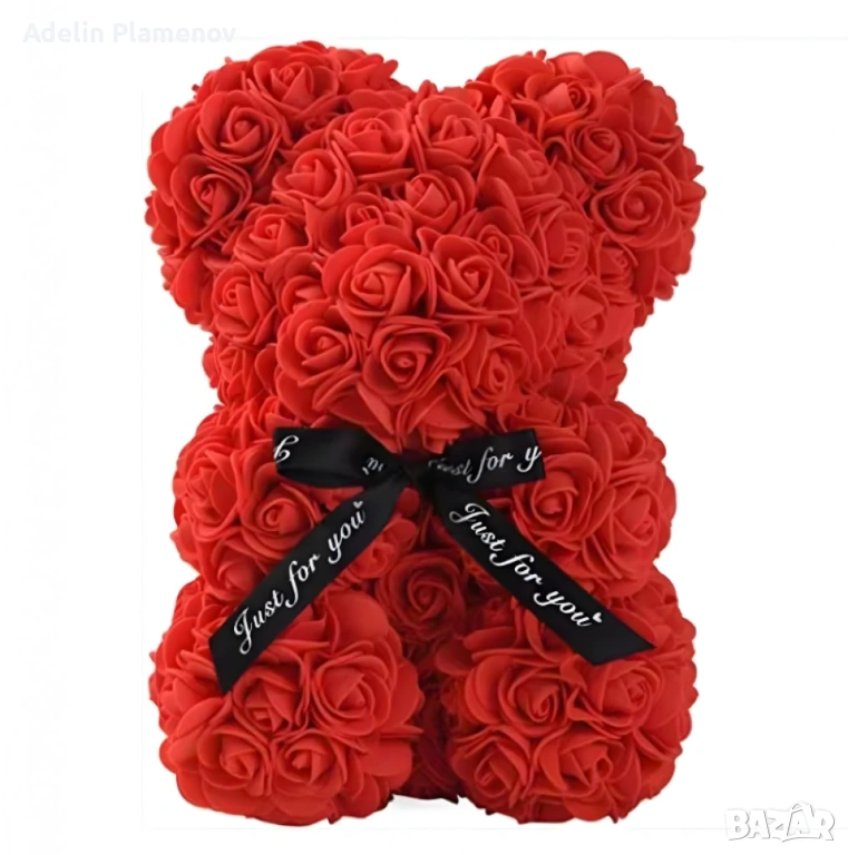 Плюшено мече с LED рози - подарък за мама, момиче, баба - комплект вечни рози 25 см