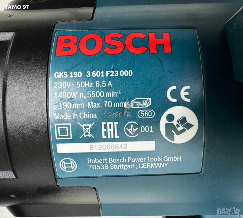 BOSCH GKS 190 - Ръчен циркуляр 1400W 190mm перфектен!