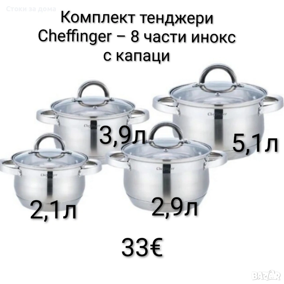 Комплект тенджери Cheffinger – 8 части инокс с капаци