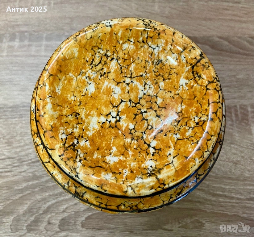 Декоративна cassolette (baguier) в стил Арт Деко, изработена от белгийска фаянсова керамика от манифактурата Wasmuël, датирана приблизително от 1920-те години.