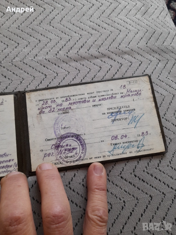 Старо свидетелство за правоспособност, снимка 1 - Колекции - 53368415 Старо свидетелство за правоспособност, снимка 2 - Колекции - 53368415 Старо свидетелство за правоспособност, снимка 3 - Колекции - 53368415 Старо свидетелство за правоспособност, снимка 4 - Колекции - 53368415 Старо свидетелство за правоспособност, снимка 5 - Колекции - 53368415 1/5