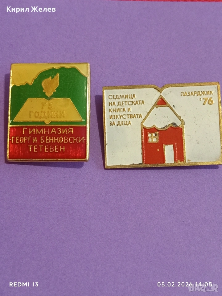 Две значки Гимназия Георги Бенковски Тетевен - Пазарджик 51110