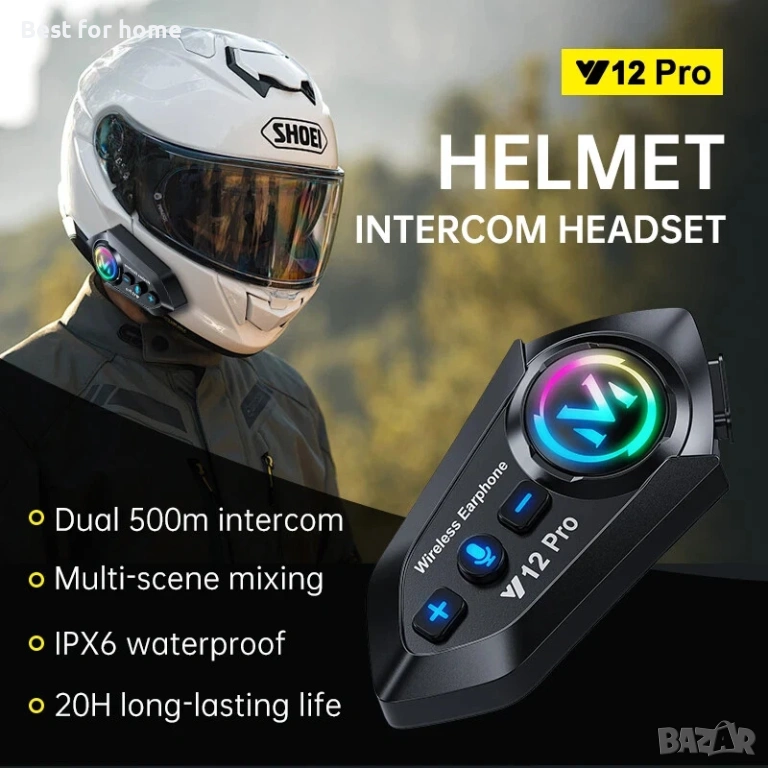 Y12 Pro Мотоциклетна каска Интерком Bluetooth слушалка 500M Безжичен интерком