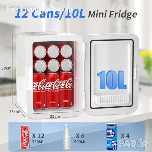 Мини хладилник 10L (до 12 кенa) – компактен за спалня, офис, студентска стая
