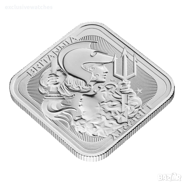 сребро е изключително колекционерско и инвестиционно кюлче, отсечено от 1 унция чисто сребро 999.9. То е част от лимитирана серия квадратни кюлчета Британия и Либърти, създадени чрез сътрудничество между Кралския монетен двор и Монетния двор на Съединените щати. Колекцията отдава почит на иконите на Великобритания и Либърти в отличителна квадратна форма.
