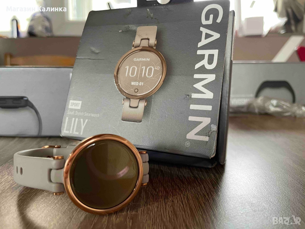 Продавам оригинален дамски смарт часовник GARMIN – стилен и функционален, подходящ за ежедневие и спорт.