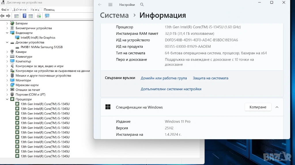 Лаптопът е в отлично визуално и безупречно техническо състояние. В комплект с оригиналното зарядно у-во. Батерията кара до 10 часа. Инсталиран Windows 11 Pro - оригинален и лицензиран, закупен заедно с лаптопа.