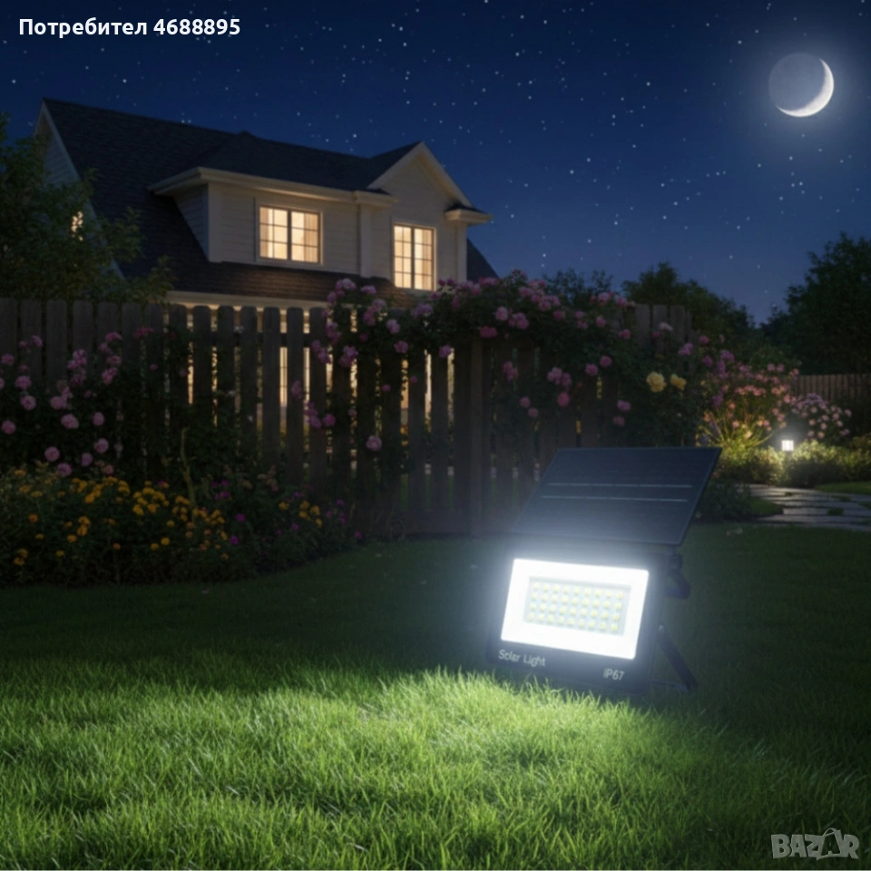 Соларна лампа COBA CB-LD180 (126 LED) — мощен външен прожектор със сензор за здрач, IP67, снимка 1 - Соларни лампи - 53368962 Соларна лампа COBA CB-LD180 (126 LED) — мощен външен прожектор със сензор за здрач, IP67, снимка 2 - Соларни лампи - 53368962 Соларна лампа COBA CB-LD180 (126 LED) — мощен външен прожектор със сензор за здрач, IP67, снимка 3 - Соларни лампи - 53368962 Соларна лампа COBA CB-LD180 (126 LED) — мощен външен прожектор със сензор за здрач, IP67, снимка 4 - Соларни лампи - 53368962 1/4