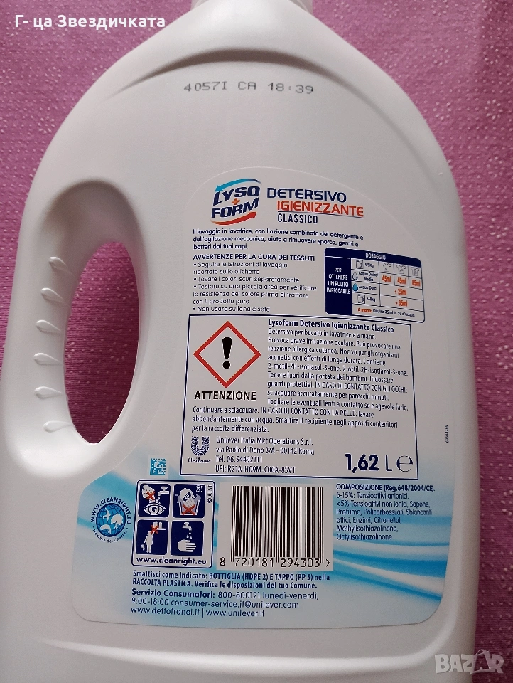 Течен италиански перилен препарат.