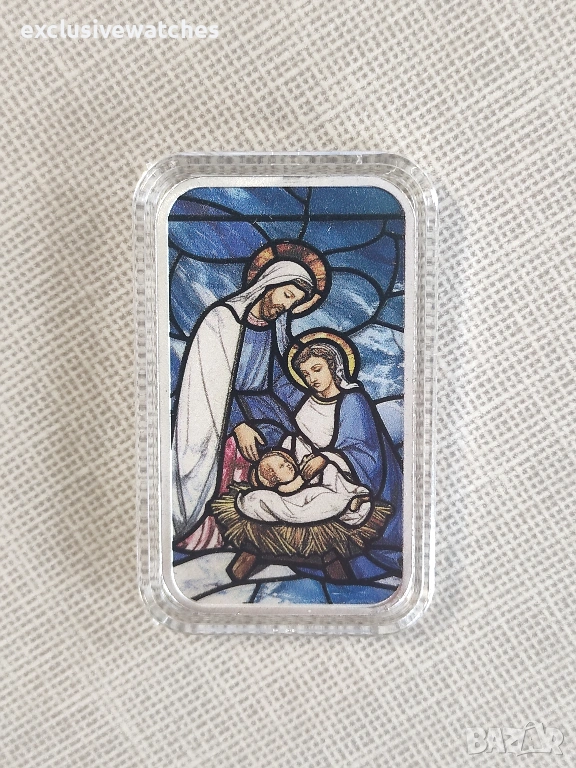 Pamp: Коледна цветна сребърна монета „Рождество Христово“ 1 oz, 2025 Proof е уникално колекционерско сребърно кюлче, красиво илюстриращо раждането на Христос. Вдъхновена от стила на витражите, тя е значим сувенир и празничен символ на надежда и вяра.