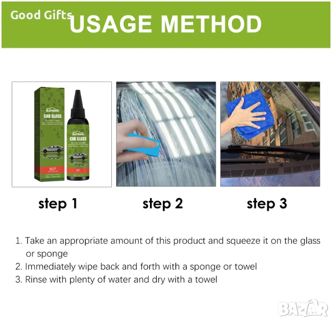 Защитна бариера: Създава фин филм, който отблъсква водата и праха, поддържайки стъклата чисти за по-дълго време.