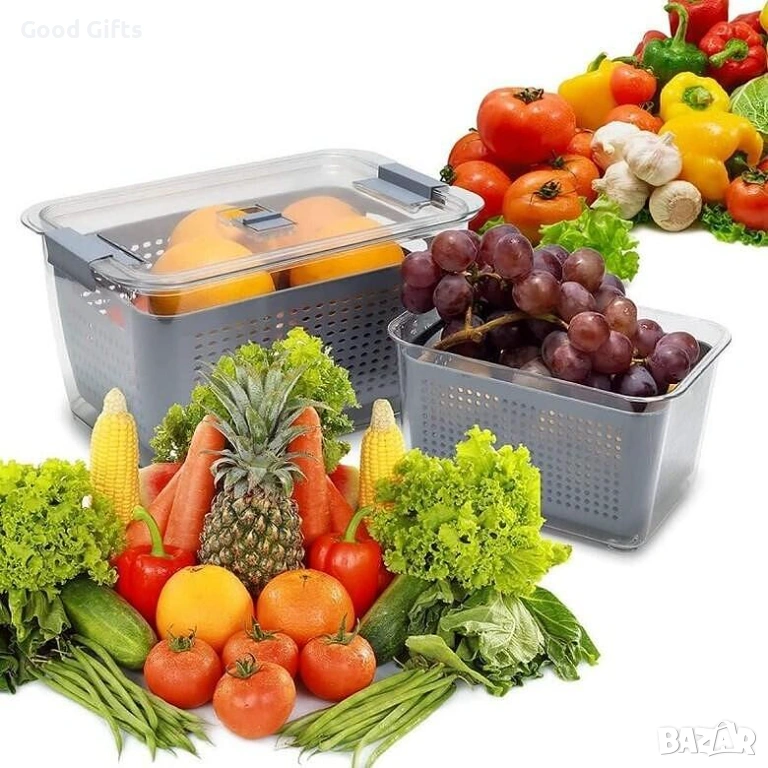 Забравете за омекналите плодове и бързо развалящите се зеленчуци! Нашият комплект от 2 броя интелигентни съдове за съхранение е създаден, за да удължи живота на Вашата храна и да внесе перфектна организация в хладилника Ви.