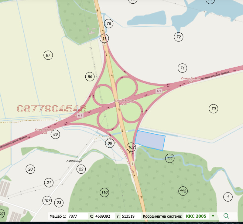 30119.69.10 е кадастралният номер на имота. Предлагам парцел, на супер удобно място, до магистрала Тракия, на детелината. Наблизо има електропровод и водопровод. Цената е 8 евро на кв.м. Парцелът е подходящ за застрояване, като склад, представителство, цех, билборди, видими ясно от преминаващите автомобилисти по магистралата. От собственик. Добра инвестиция.