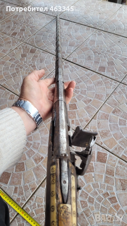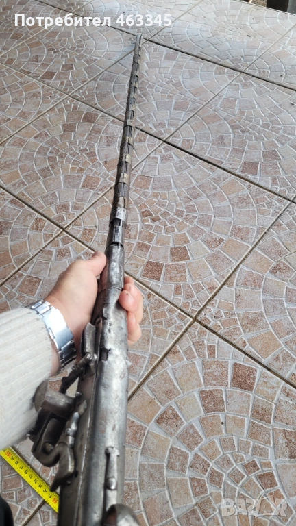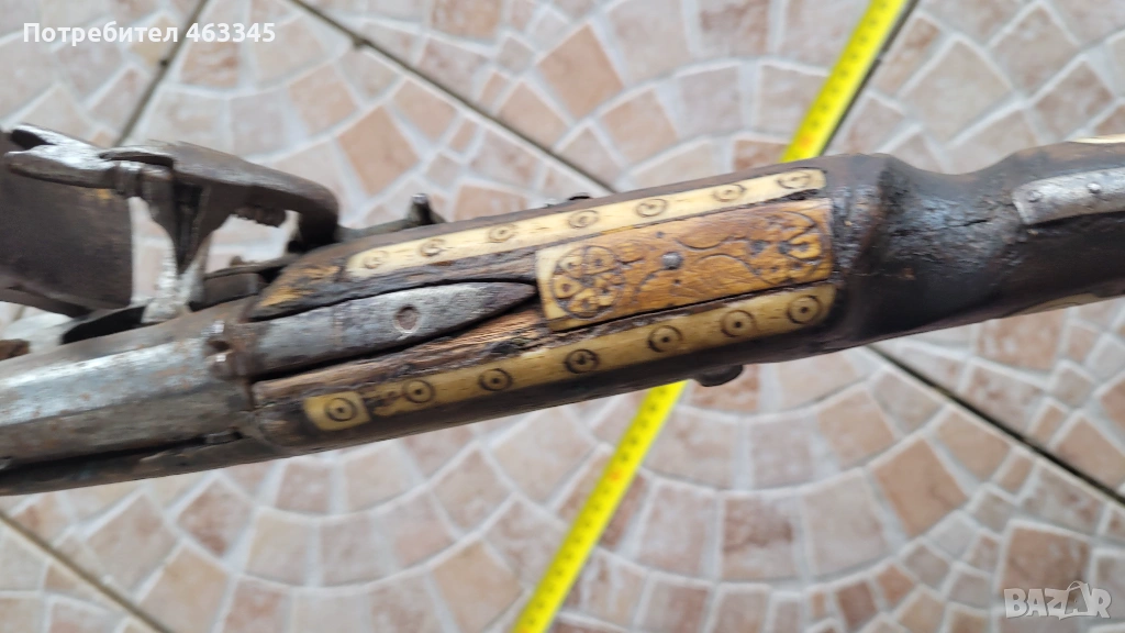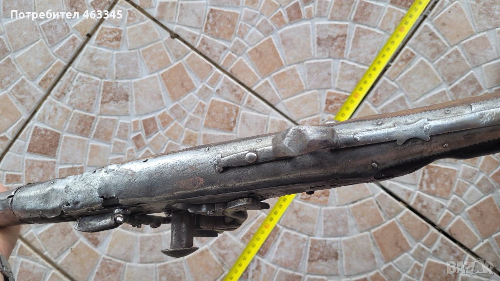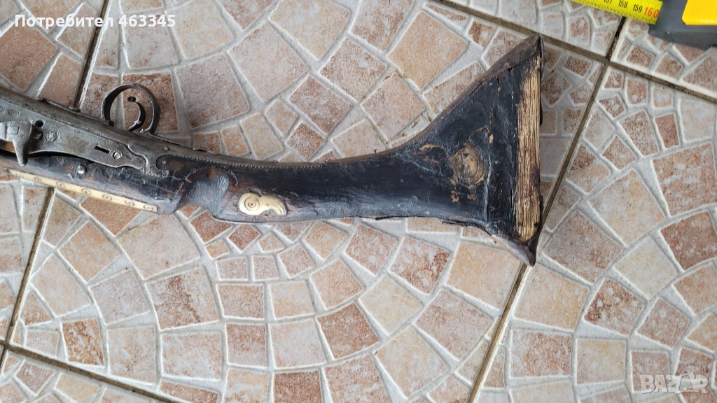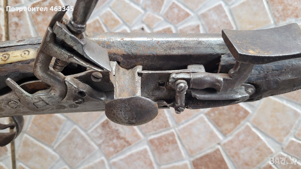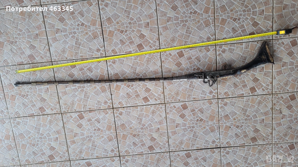 Старинна османска кремъклийка от 18-ти век. Много дълга - 160 см. Пушката е 100% оригинал. Дървенията е прилична, без много подбитости с нормални за времето си следи от износване. Плочката носи и султанска тугра, и майсторско клеймо. Цевта е читава, без ръжда и язви. Механизмът се движи, но петлето не запъва. Бойната пружина е силна и спусъкът връща. Нуждае се от дребен ремонт.