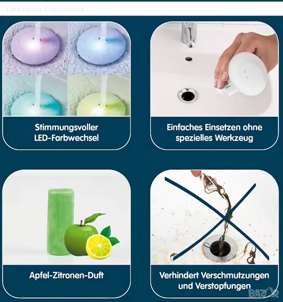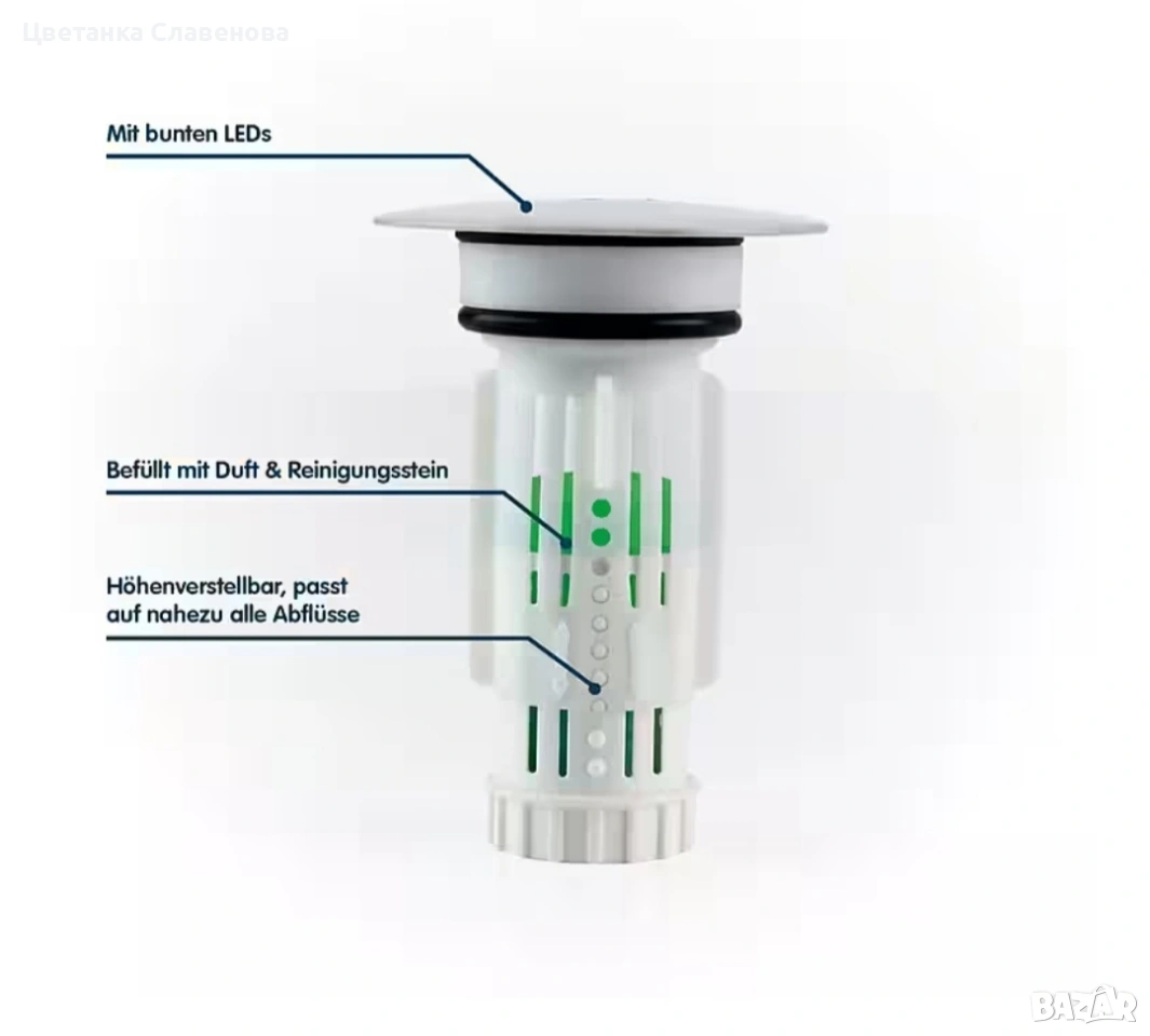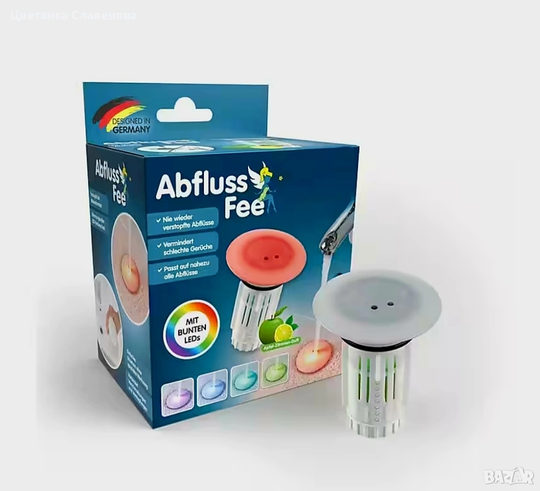 Защитете канализацията си от запушвания, причинени от коса, мъх, сапунени отлагания и други! С Drain Fairy, включващ цветни светодиоди, можете бързо и лесно да предотвратите образуването на миризми в тръбите. Освен това получавате свое собствено светлинно шоу, на което да се наслаждавате, докато си миете зъбите и ръцете. Запушалката за канализация автоматично започва впечатляващата си промяна на цвета при контакт с вода.